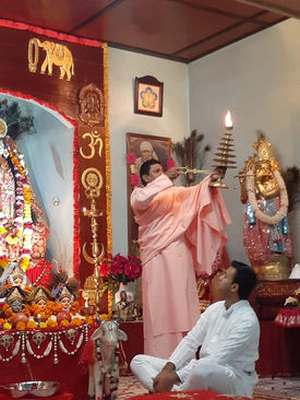Shri Swami Ajay célébre la fête de Ganesh Chaturthi sur cinq jours. La cérémonie est clôturée par un rituel de purification par le feu (Yagna).